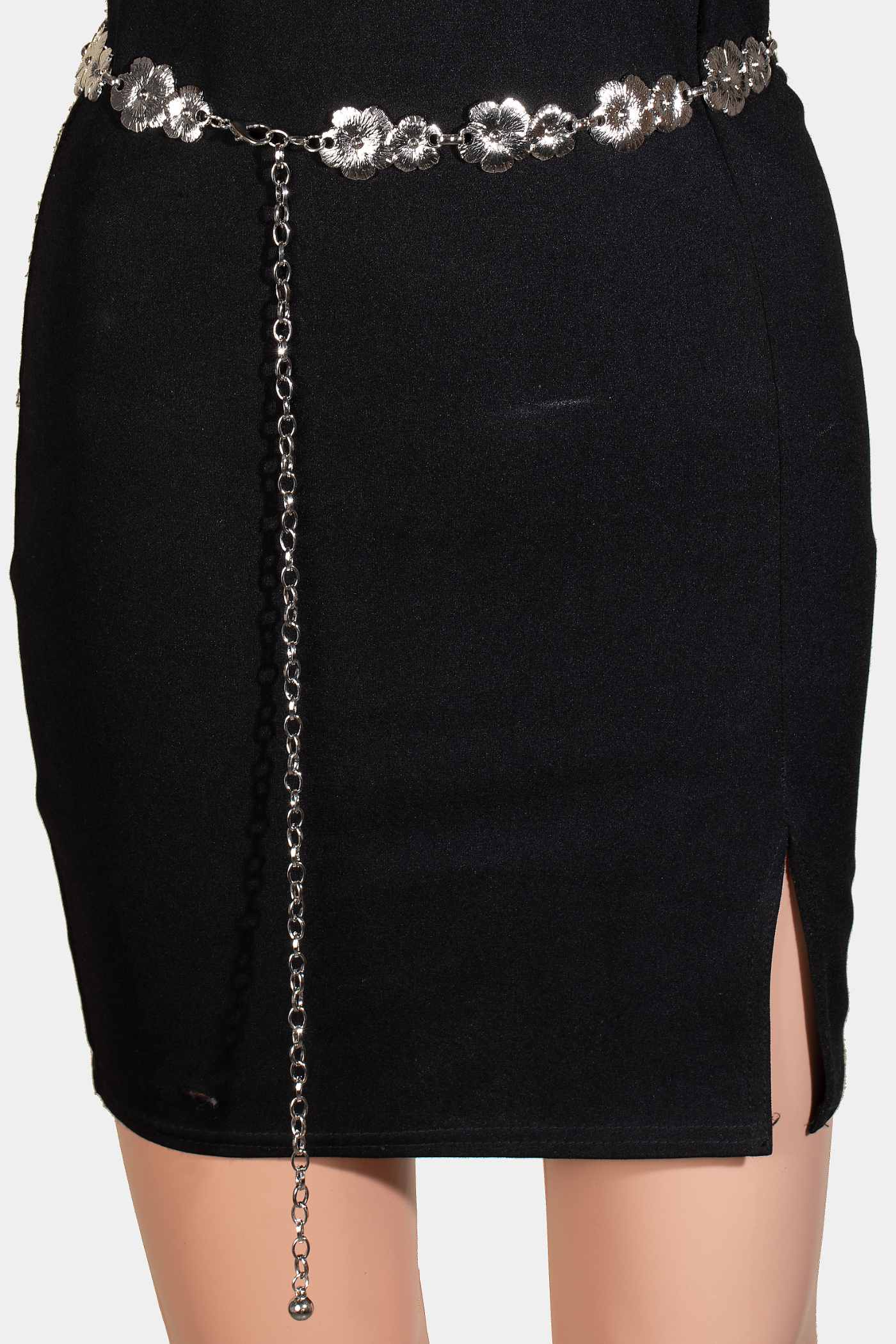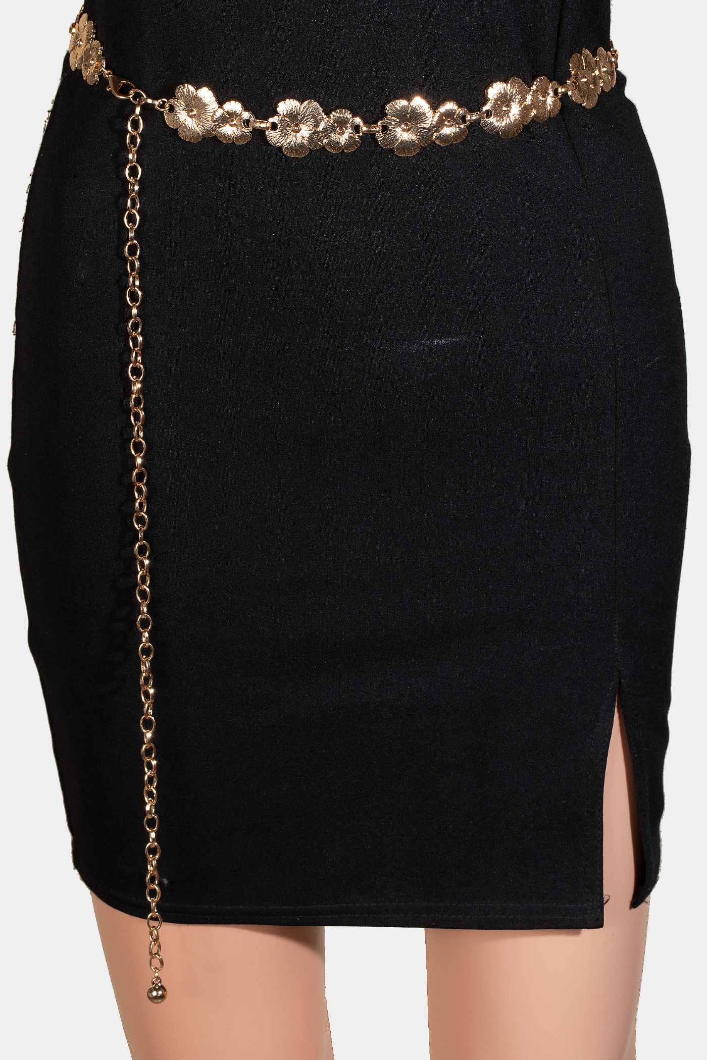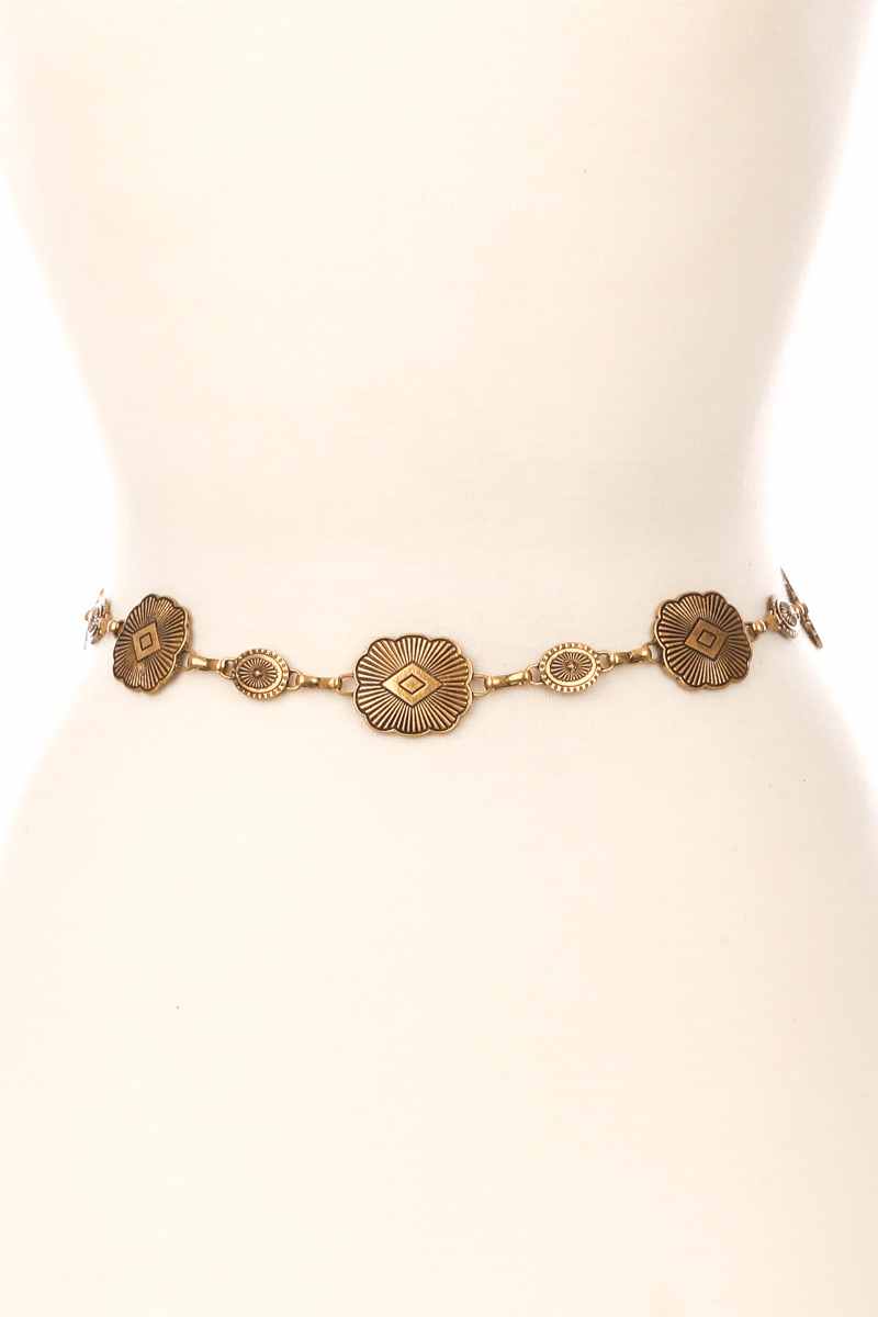 | Gold-tone alloy chain belt featuring ornate floral medallions. | |||