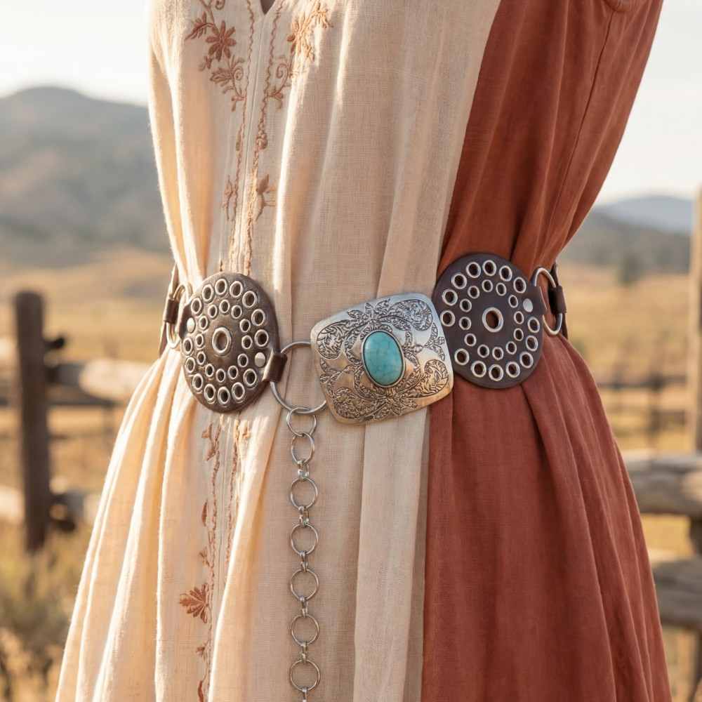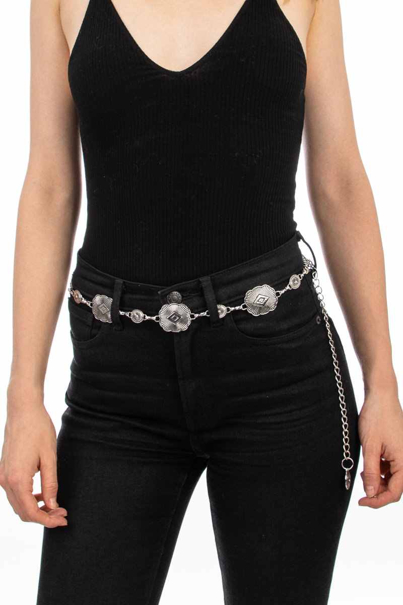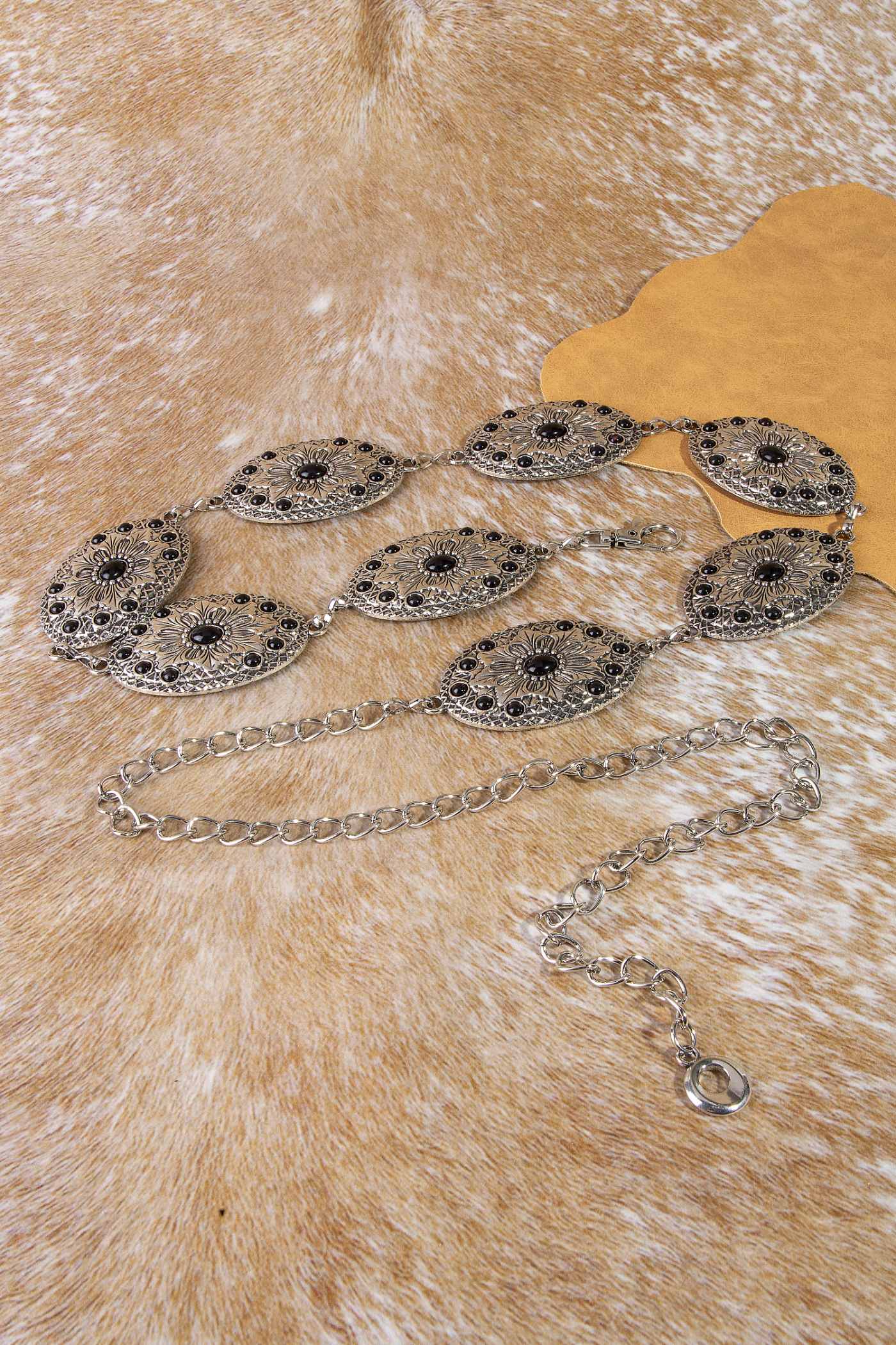 | Antique gold alloy western concho chain hip belt featuring. | |||
