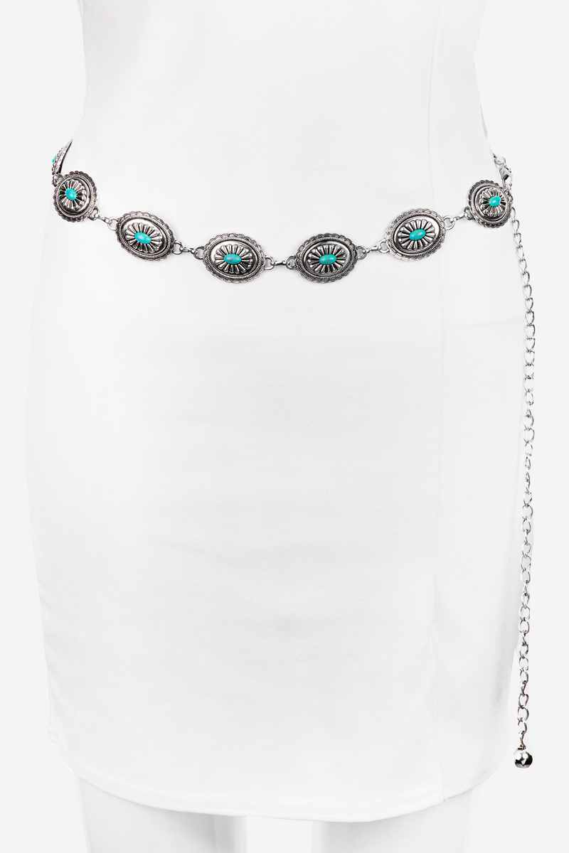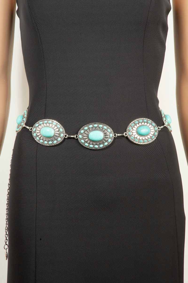 | Antique gold alloy concho chain belt with turquoise-colored. | |||