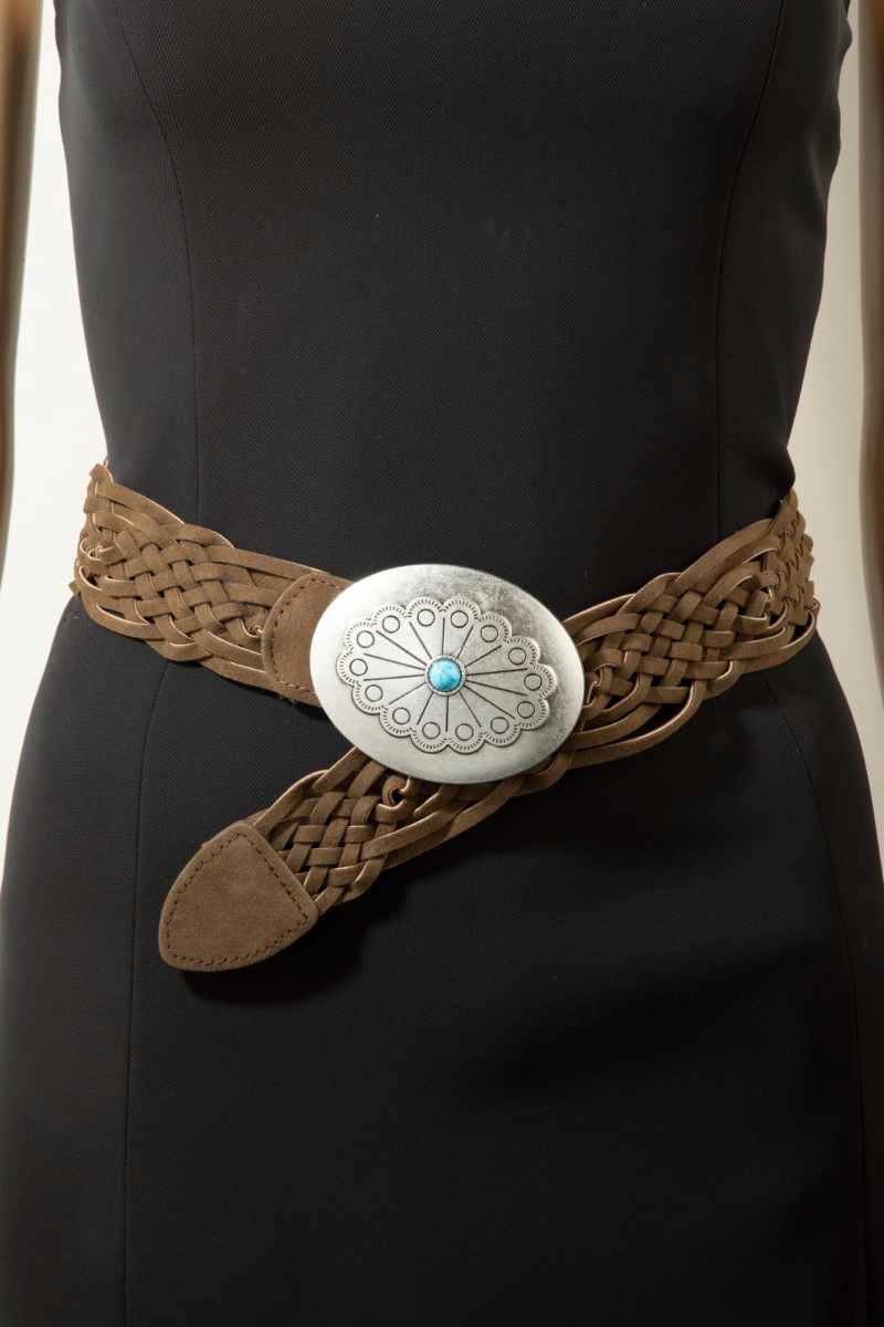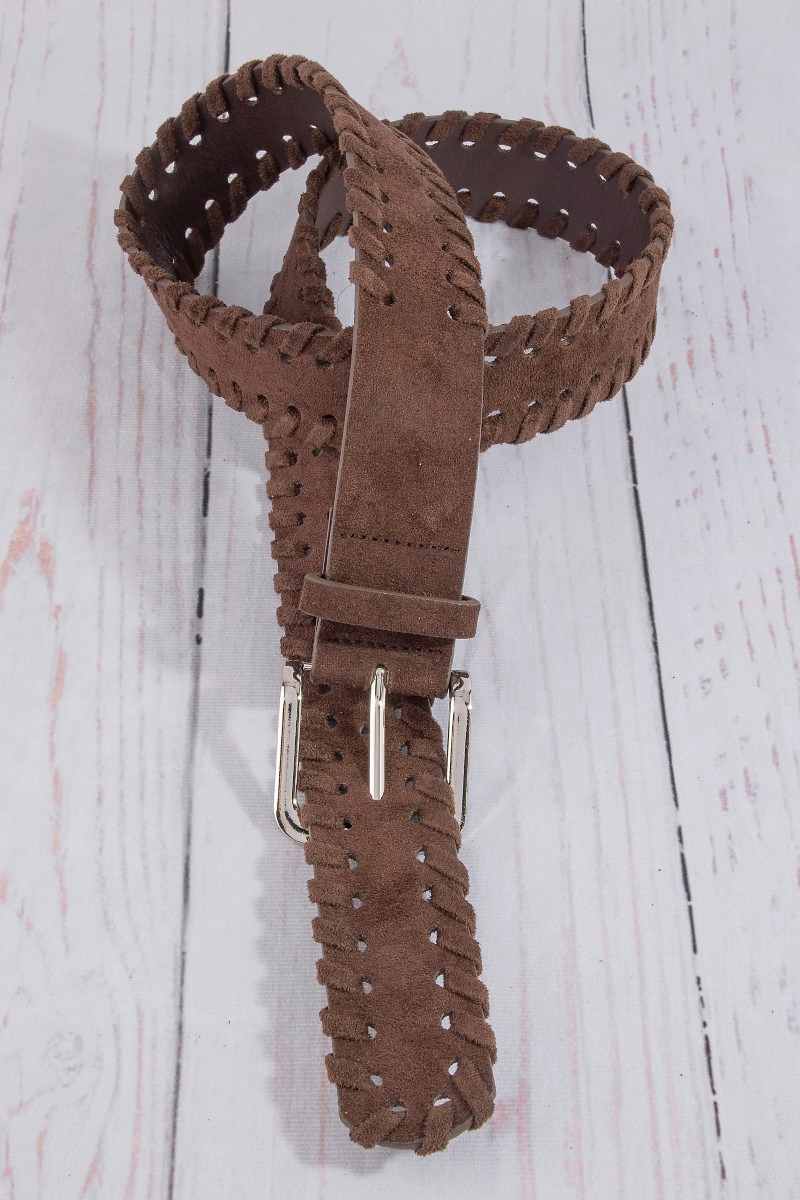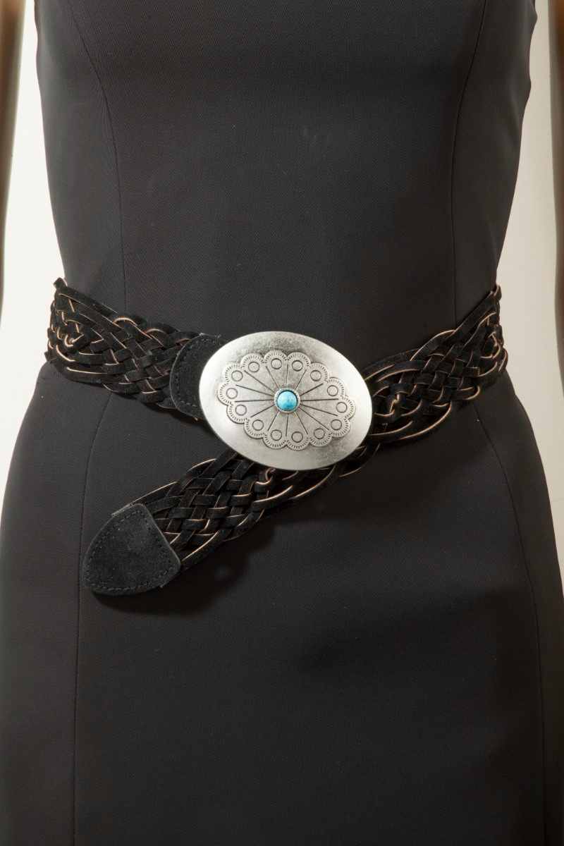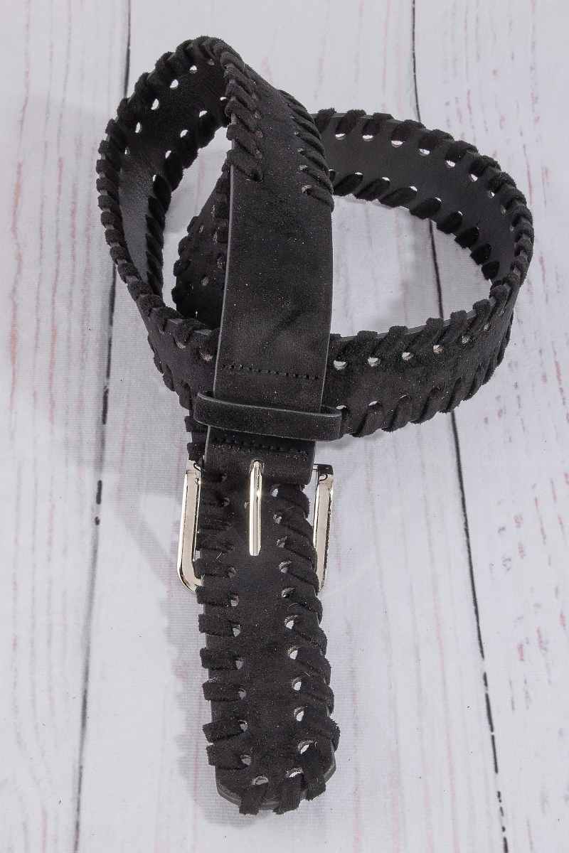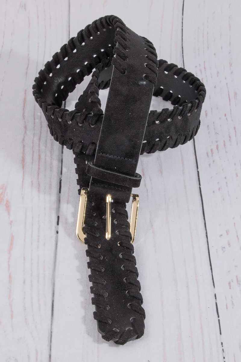 | Black faux suede belt with intricate braided/woven edge. | ||||