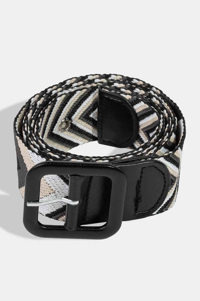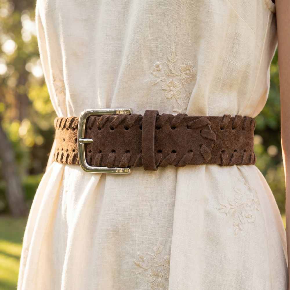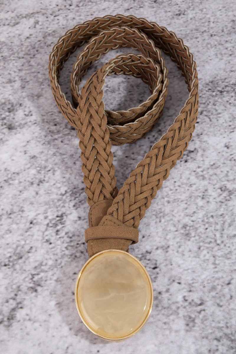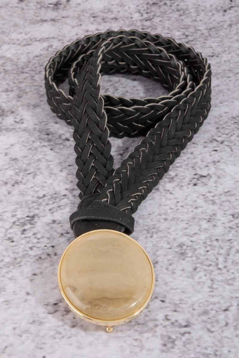 | Black faux suede belt with intricate braided/woven edge. | ||||