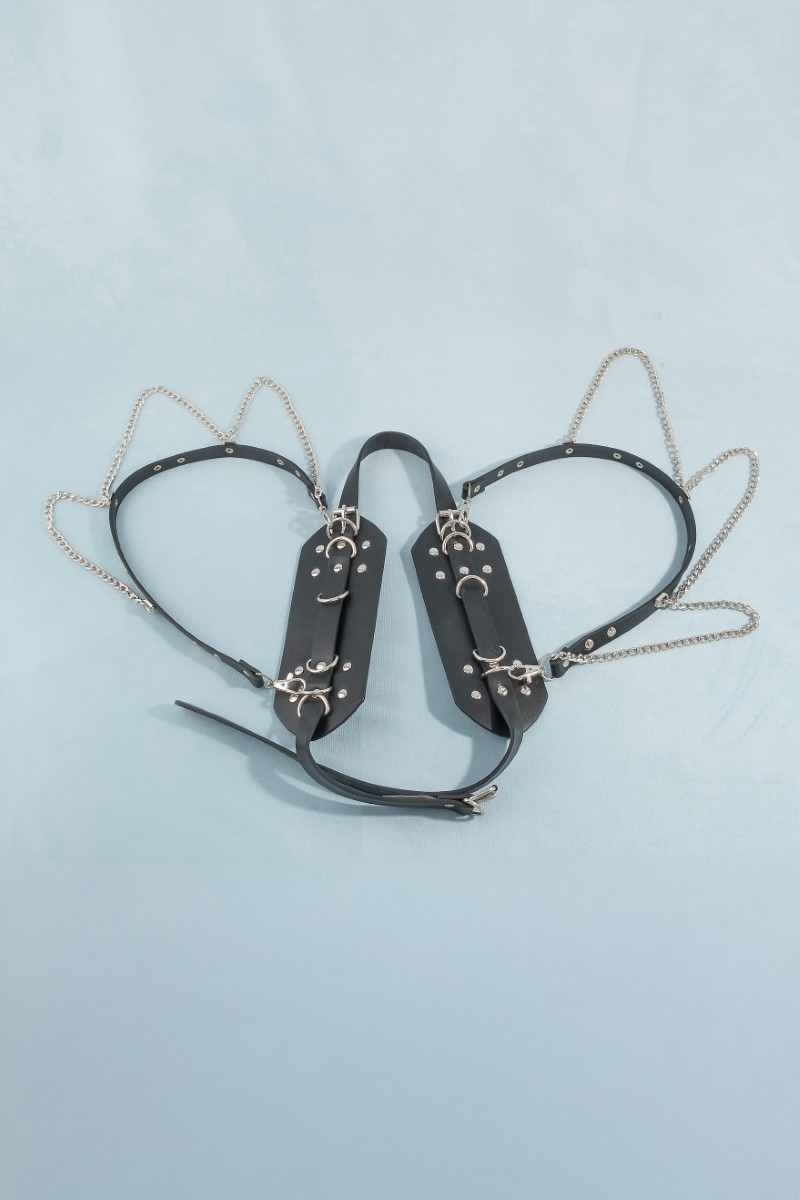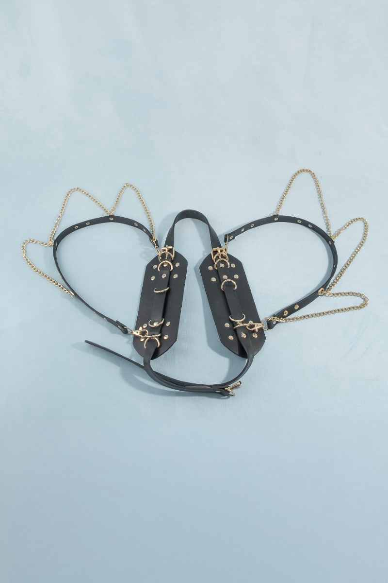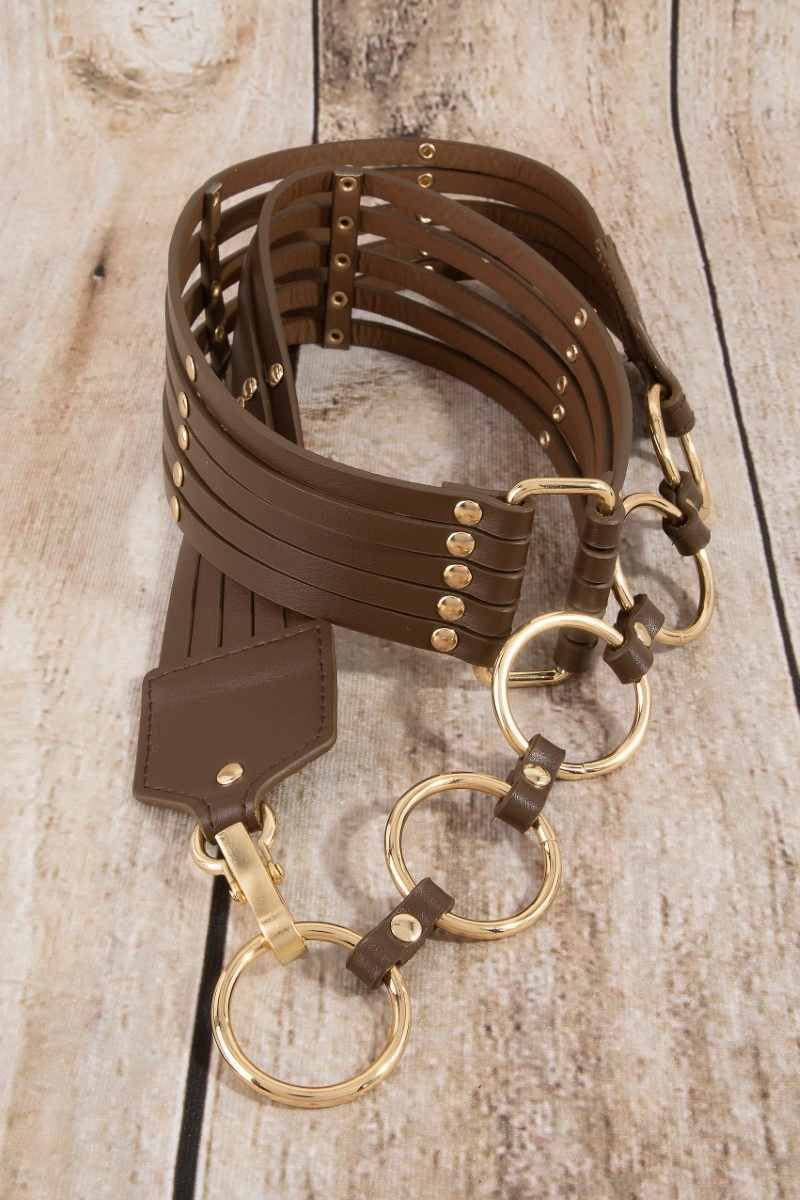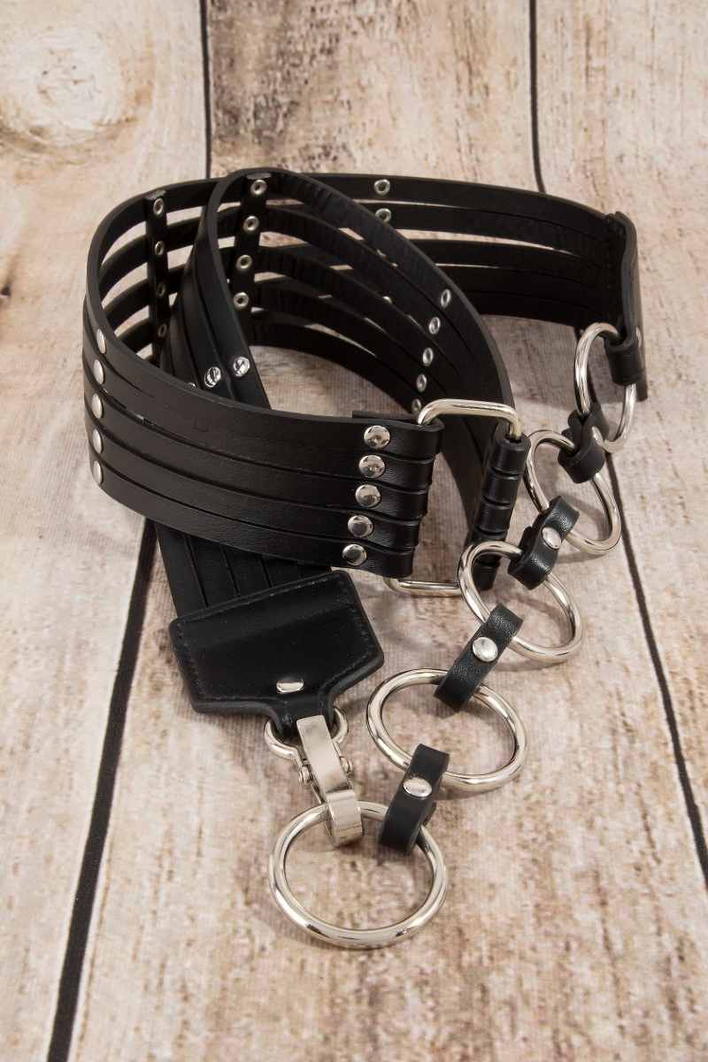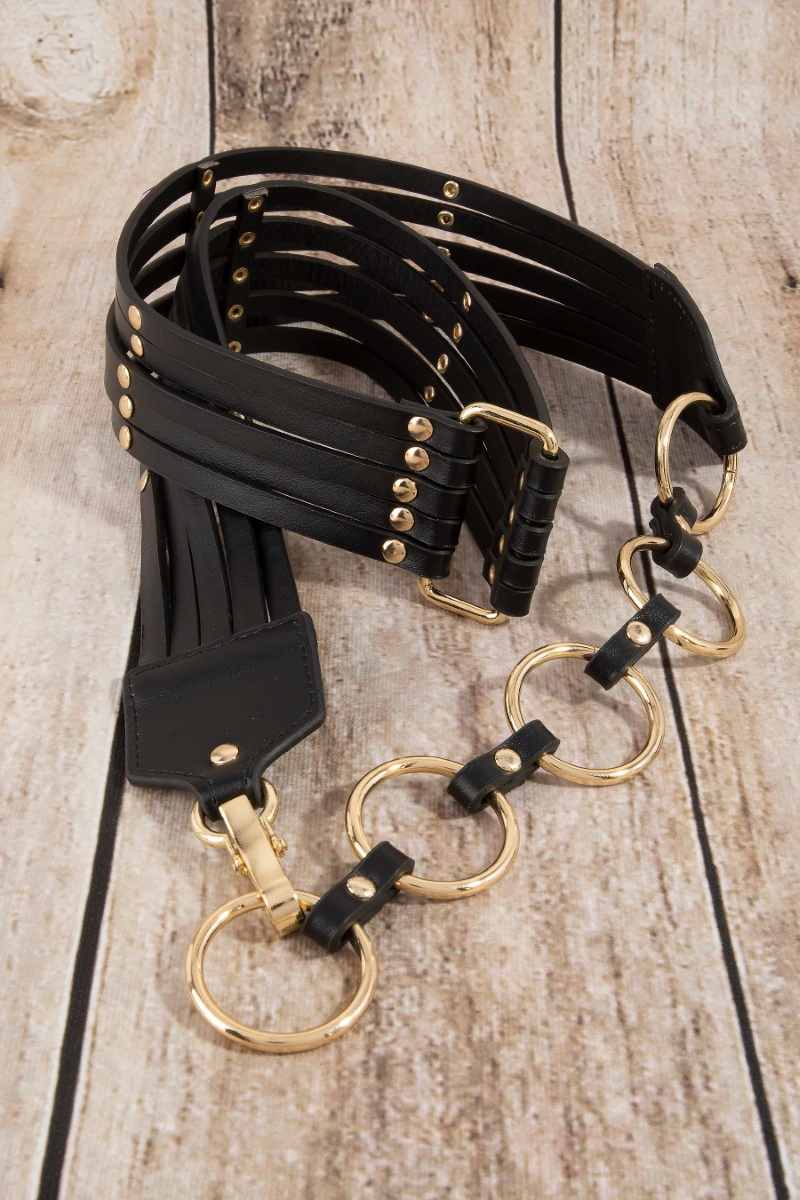 | Black faux leather multi-strap belt with gold studs. | ||||
